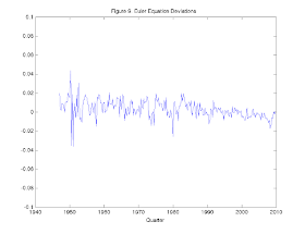 図10に恐慌時のオイラー方程式の残差を示す。残差は大きいがしかしその符号は逆向きだ。GTでは投資家の低い収益見通しを反映して残差は負でなければならない。実際には残差は正で投資家は収益に関して楽観視していたことを示している。